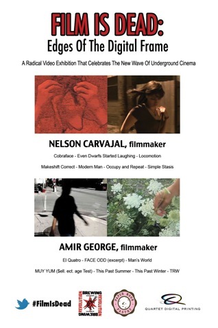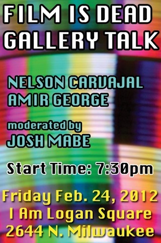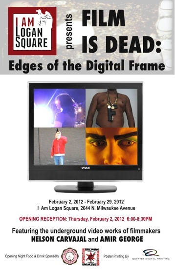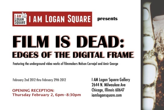 Nelson Carvajal was the curator and featured artist of the “Film Is Dead: Edges Of The Digital Frame” video art exhibit at the I Am Logan Square Gallery in Chicago, Illinois. The exhibit opened on February 2, 2012 and had a successful month-long run, posing “as a rallying cry for new forms of storytelling afforded by appropriated images and consumer devices” (Ben Sachs, Chicago Reader). The exhibit also featured the underground video works of Amir George and installation pieces by Lea Palmeno.